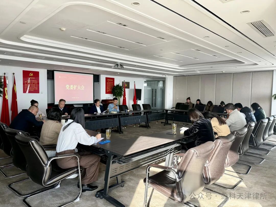 2025年11月17日下午,北京盈科(天津)律师事务所在环球金融中心78层盈科北京厅召开党委扩大会议,学习贯彻党的二十届四中全会精神,研究当前热点难点问题,总结律所2025年工作,谋划2026年重点工作。
