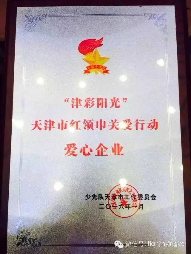 少先队天津市工作委员会授予北京盈科(天津)律师事务所“天津市红领巾关行动爱心企业”称号。