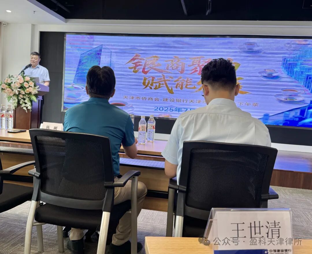 “银商聚力,赋能发展”,为了更好的服务会员企业在金融方面的需求,促进银企合作,实现互利共赢,7月29日下午,建设银行天津市分行与天津市侨商会联合举办银企下午茶活动。天津市侨商会副会长,北京盈科(天津)律师事务所党委书记、执行主任王世清律师参加活动。
