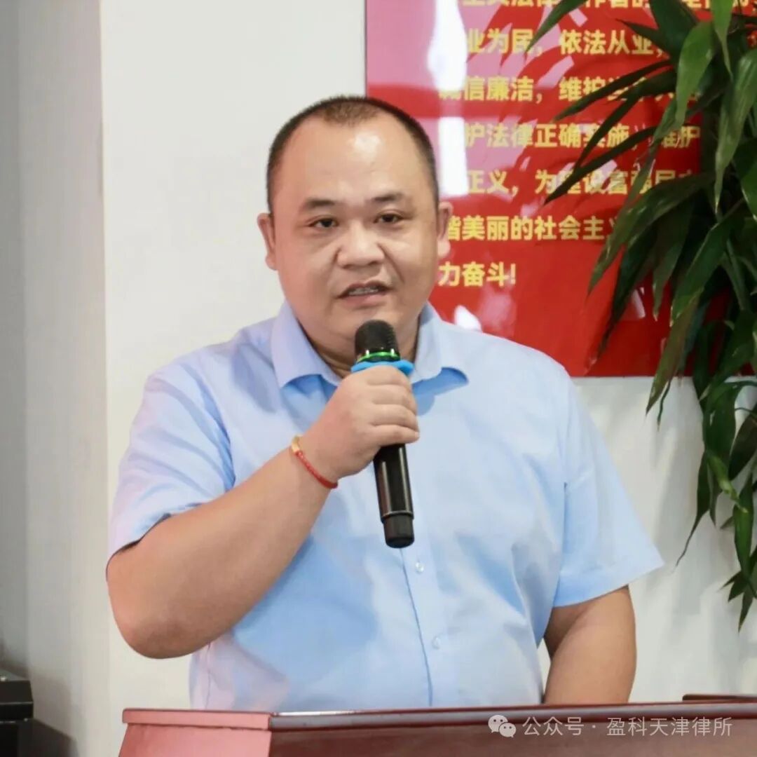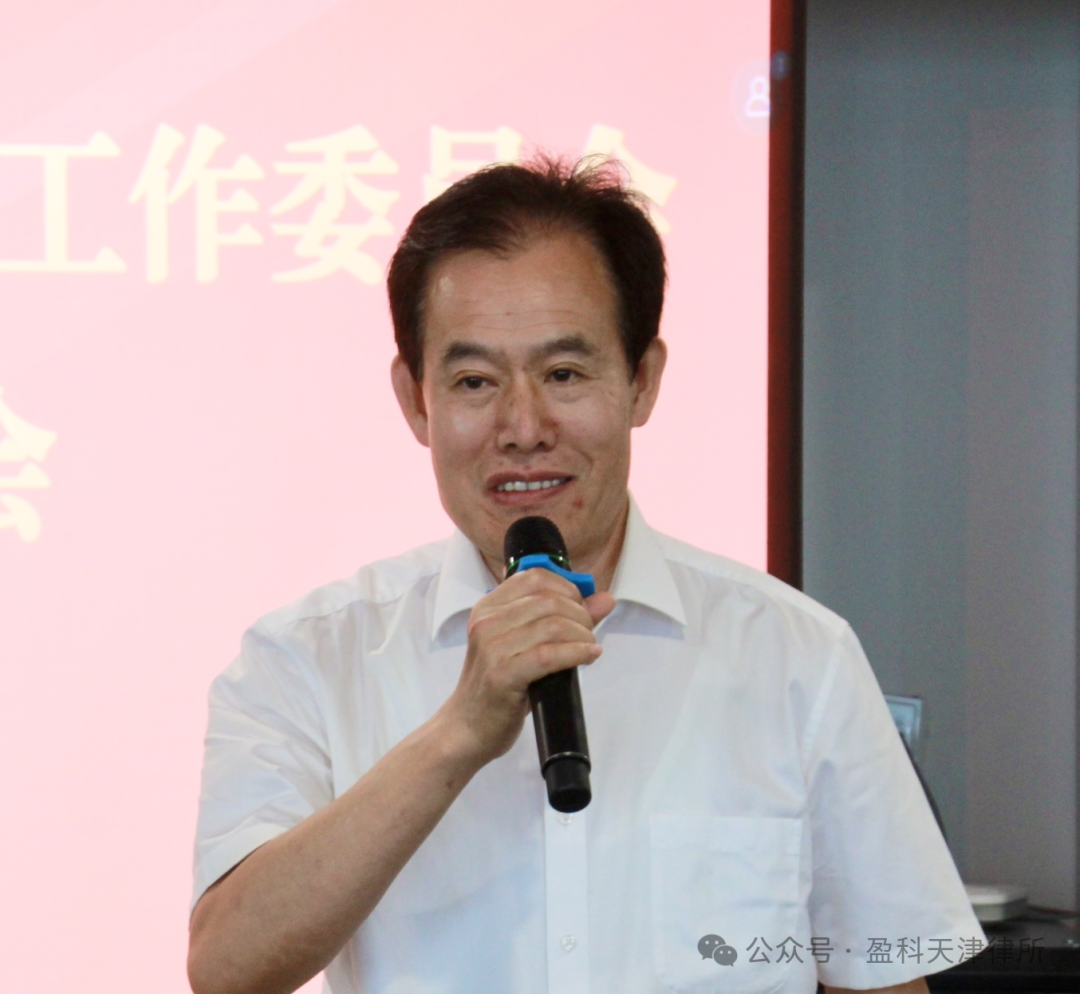 会议最后,盈科天津党委书记、执行主任王世清进行总结发言。他首先对上届青工委,特别是郭鑫主任的突出贡献表示感谢。他指出,郭鑫主任任职期间,带领团队斩获盈科全国青工委几乎所有荣誉,且常年位居前列。郭主任作为中央电视台《法律讲堂》主讲人,曾获央视向律协发表扬信,这是行业罕见的肯定。感谢青年律师们的努力付出,让盈科天津青工委走在体系前列。