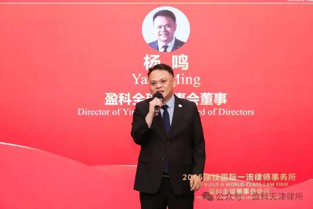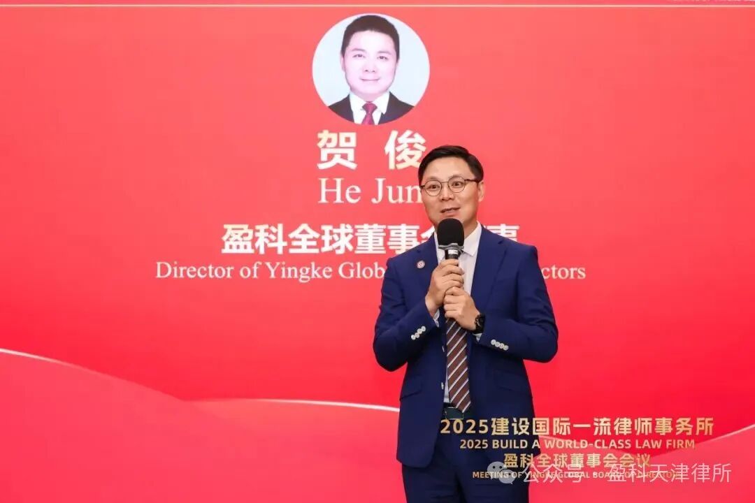 盈科全球董事会董事、全国公益工作委员会副主任贺俊表示自身职业成长得益于盈科平台与全体同仁的支持,今后将继续投身盈科全球化法治事业,与盈科同仁共筑新时代法治桥梁,并肩为全球法治建设添砖加瓦。
