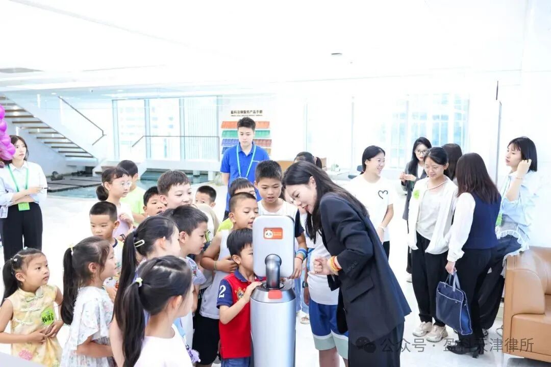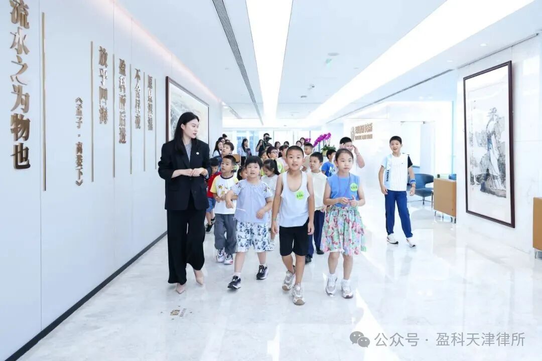 随后,在盈科讲解员们的陪伴下孩子们参观了盈科北京总部,通过生动形象的讲解向孩子们介绍了律所的发展历程、文化建设及未来规划。参观过程中,孩子们近距离观察律师的工作环境,切身感受了法律职业的严谨与魅力,体验了一把当"小律师"的感觉。