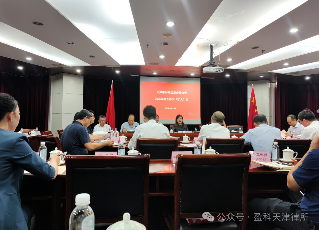 2025年8月19日,北京盈科(天津)律师事务所客管部主管何晴、专员郭淑蕾,作为理事单位代表,应邀出席了天津市对外经济合作协会召开的2025年会长办公(扩大)会。