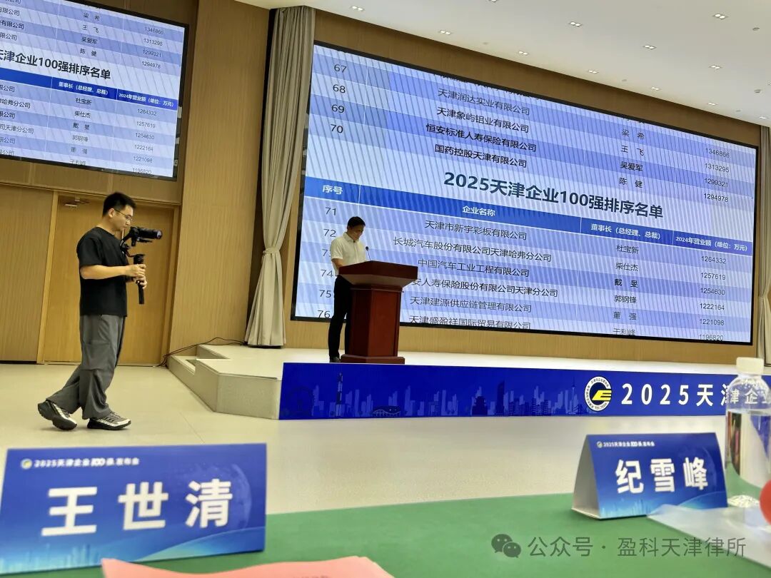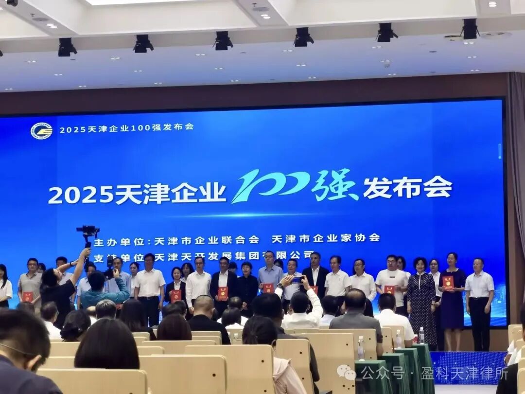 盈科天津律师参加2025天津企业百强发布会并为企业代表颁发证书