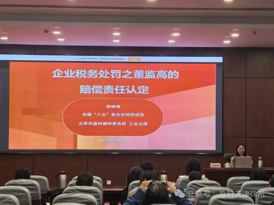2025年10月25日,天津市律师协会成功举办“企业税务处罚中董监高责任承担及涉税案件办理实务”专题讲座。本次讲座聚焦新《中华人民共和国公司法》实施后,企业在税务处罚、董监高责任认定等方面面临的法律挑战与实务难题,旨在为全市律师提供系统性、实战性的业务指导,助力律师在新法背景下实现专业能力的提升与业务领域的拓展。