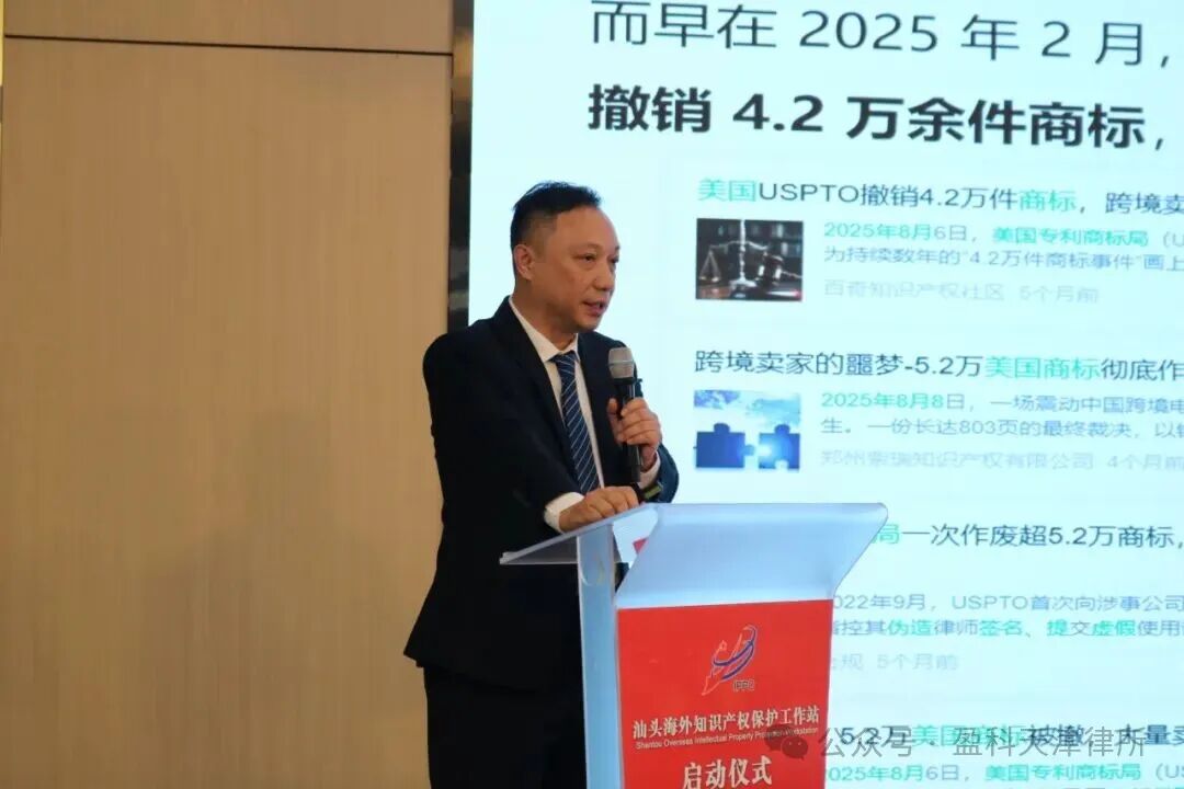 为积极响应国家知识产权强国战略,助力汕头市知识产权强市试点城市建设,推动海外知识产权保护服务落地生根,2026年1月20日,汕头海外知识产权保护工作站启动仪式在广东省汕头市隆重举办。北京市盈科律师事务所作为本次活动的协办方,与汕头市政府、市监局及各合作单位一道,共同见证美国、德国、马来西亚三家“汕头海外知识产权保护工作站”的揭牌启航,标志着汕头企业在“走出去”进程中迎来专业化、国际化知识产权护航新支点。