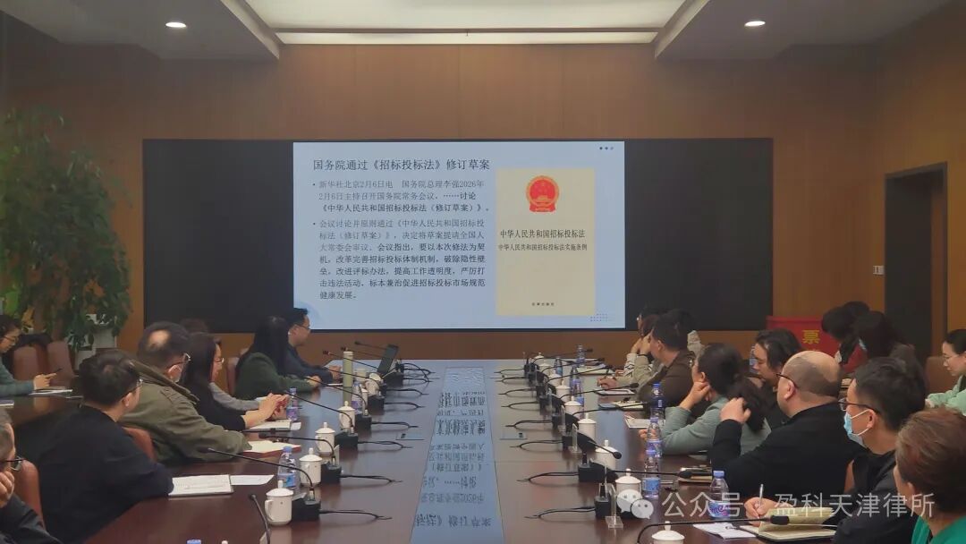 讲座以2026 年《招标投标法》修订草案为依据,重点解读立法目的升级、必招范围重构、全流程电子化与 AI 应用、遏制异常低价、评定分离、招标人终身追责、围标串标处罚升级、信用监管全国联网等核心变化。两位律师结合设计行业特点,从前期准备、投标编制、评标应对、中标履约、争议解决等环节给出实操合规指引,针对性破解招投标常见法律难题。 本次讲座内容实用、贴近业务,有效提升了设计院员工的法律风险防控意识与合规操作能力,得到参会人员的充分认可。 未来,盈科天津将持续发挥专业优势,聚焦工程设计、建设工程、投融资等领域法律需求,积极开展公益普法与专业培训,以高品质法律服务助力企业合规发展,为营造公平有序、法治健全的营商环境贡献盈科力量。